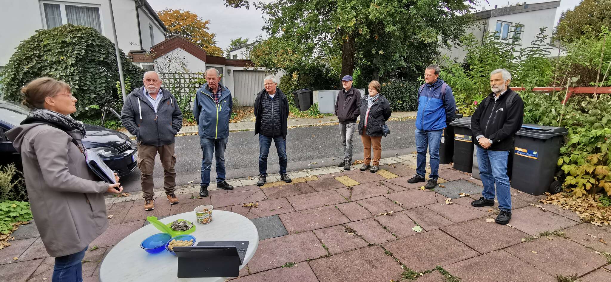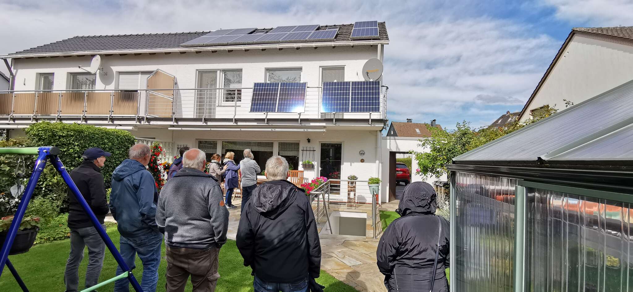 Am 24.09.25 gab es zum ersten Mal einen PV-Spaziergang. (( Ankündigung : “WattWanderung” — PV-Spaziergang (in Stiepel) )) Hier wurden 4 laufende Dachanlagen gezeigt und besprochen sowie 3 sog. Balkonkraftwerke. Es waren Anlagen aus den Anfängen (2010) und neue Anlagen aus 2023, 2024. Hier wurden viele Fragen und Probleme besprochen — insbes. auch die Handweker- / Solatuer-Situation. Eine Dachanlage wurde selbst geplant, das Material selbst besorgt und es gab ‘nur’ einen Dachdecker zur Montage und einen Elektriker zum Anschluss. Hier warten 8 Leute mit dabei.