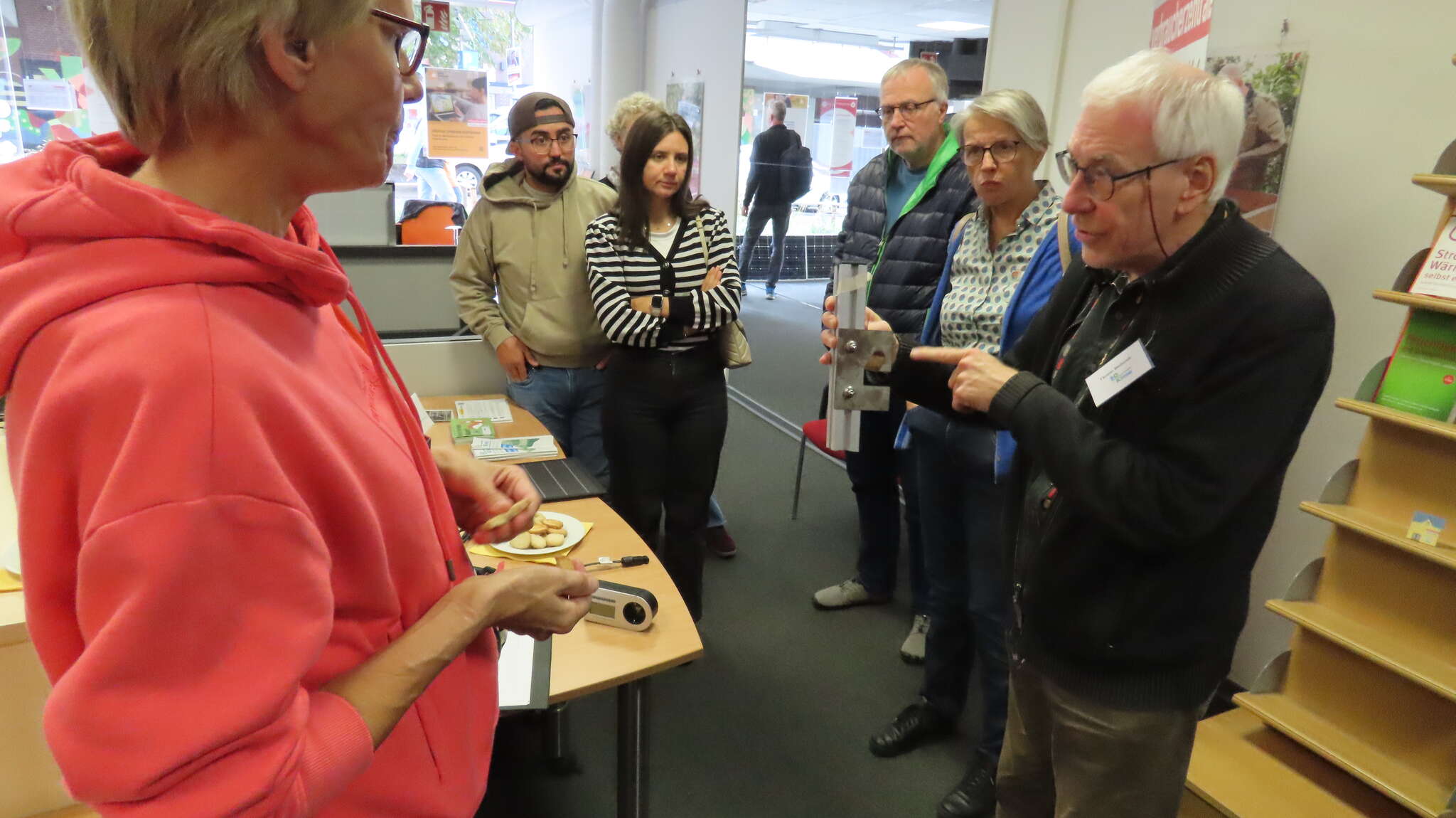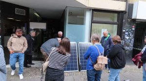 Beim Spaziergang zeigen Stephanie K. , Energieberaterin der Verbraucherzentrale in Bochum und Thomas B. vom Bochumer Klimabündnis BoKlima wo sogenannte Balkonkraftwerke, aber auch Dach-PV-Anlagen, die an Bochumer Häusern schon zum Einsatz gekommen sind, und wie Kosten und Nutzen eingeschätzt werden können.