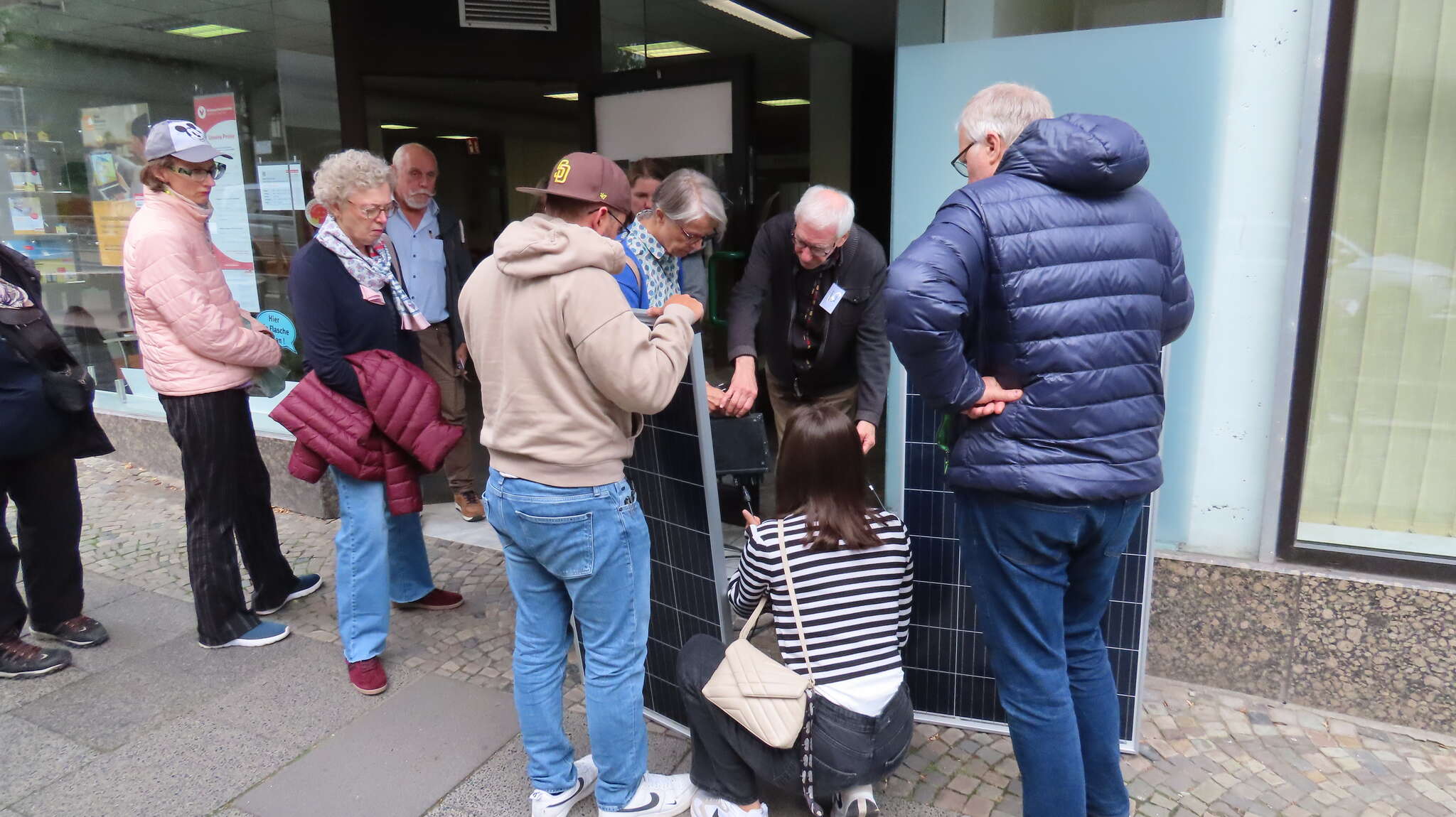 Am 27.09.25 haben wir wieder unseren ‘großen’ VHS-PV-Workshop mit Vortrag und Praxisteil zum Selber stöpseln und breitem Fragen und Diskussionsteil durchgeführt — diesmal allerdings in den Räumlichkeiten der Verbraucherzentrale . (( Ankündigung : 27.09.25 , VHS, BoKlima — Sonnenstrom für Alle” nächster Workshop zu Balkon-Kraftwerken )) . Leider war die Sonnen-Energie-Ausbeute in der Grossen-Beck-Str wg. der hohen Gebäude drumherum sehr gering. Hier nahmen 12 Leute teil.