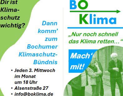 Das Bochumer Klimaschutzbündnis ist ein Zusammenschluss von Initiativen, Vereinen und engagierten Bürger:innen, die sich gemeinsam für wirksamen Klimaschutz in Bochum einsetzen.